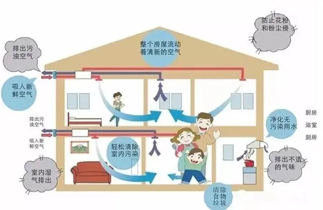 新風(fēng)機(jī)通過機(jī)械抽取室外空氣,經(jīng)過濾后送入到室內(nèi),排除室內(nèi)污染空氣,以達(dá)到凈化室內(nèi)空氣的目的。